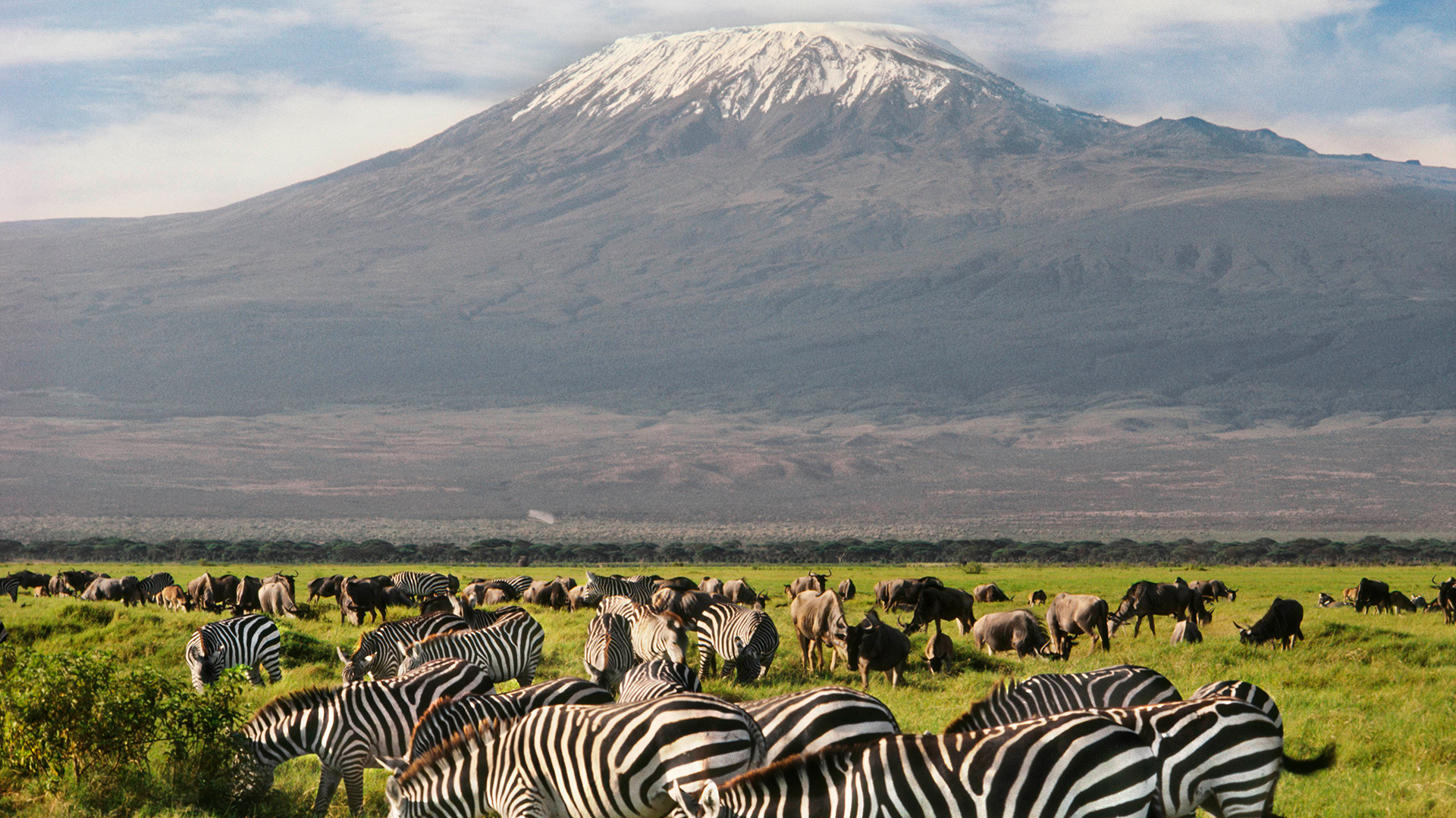 Amboseli National Park is the third most visited wildlife park in Kenya after Maasai Mara National Reserve and Nakuru National Park. It was gazetted as a National Park in 1977 in order to protect this unique ecosystem; the park is famous for being the best place in Kenya to spot elephants. Furthermore, it is a must to photograph the majestic Mount Kilimanjaro, the greatest single mountain of the world standing amidst large herds of elephants wandering in the park. In addition to the elephants, you are sure to spot the zebra, gnu, hippopotamus, buffalo, spotted hyena, waterbuck, Maasai giraffe, Thomson's and Grant's gazelle, impala, lion and cheetah. Note also the rare presence of the gerenuk and the fringed-eared Oryx in the arid northern part of the park. Most mammals stay around the swamps during the day and move towards the hilly countryside (southern section) before night. The birdlife is also abundant as about 420 species of birds have been recorded in the park. The observatory, Enkongo Narok, Ol Tukai, Olokenya Swamps and Lake Amboseli are among other attractions in the park.